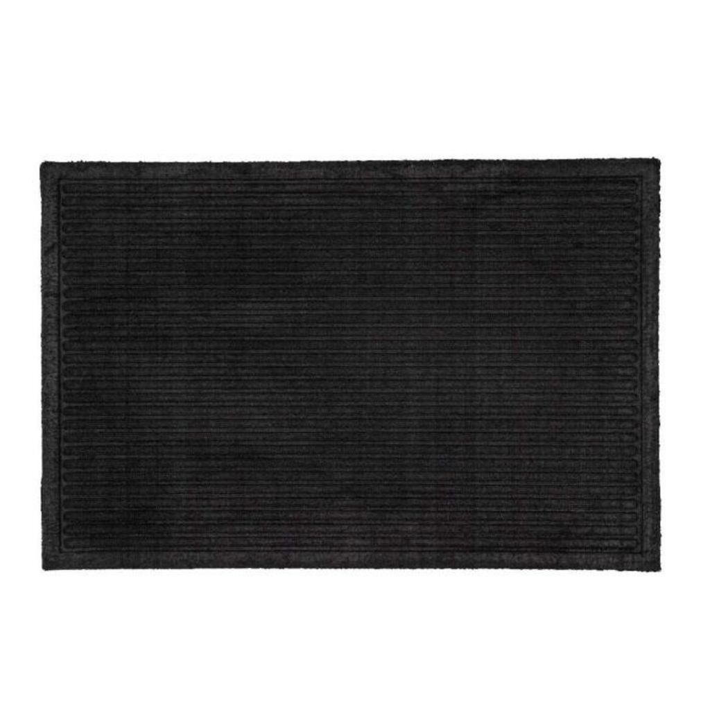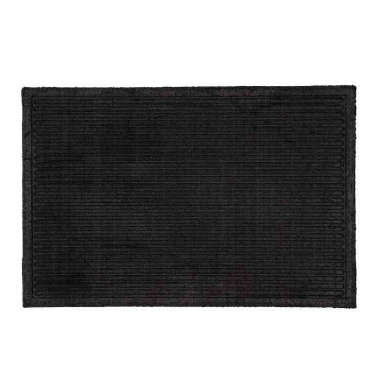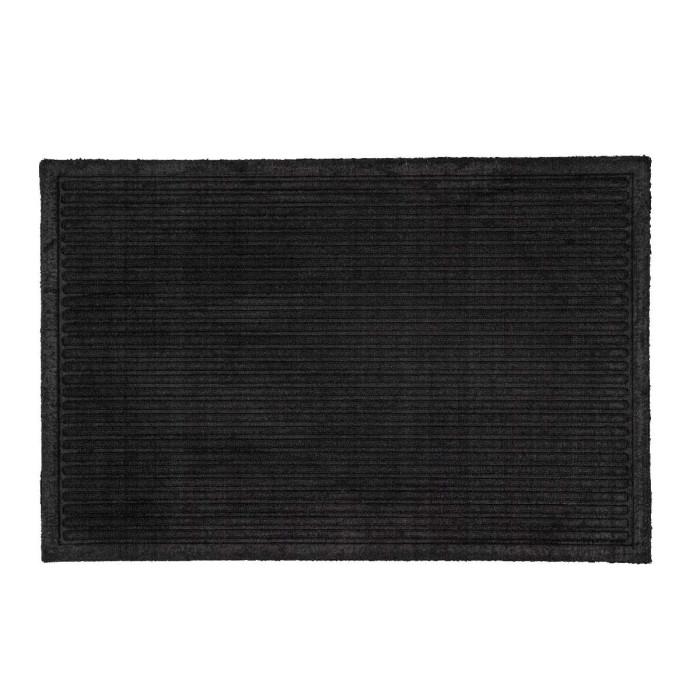 Informations Techniques : Dimensions : L. 90 x l. 60 x H. 0,8 cm Matières : Caoutchouc & Polypropylène Spécificités : Pratique & Élégant Paillasson déco Motif lignes Forme rectangulaire Poids : 2,8 kg Couleur : Noir