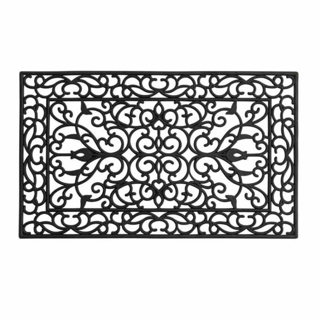 Informations Techniques : Dimensions : L. 75 x l. 45 x H. 1 cm Matière : Caoutchouc Spécificités : Pratique & Tendance Paillasson déco Motif découpé arabesque Forme rectangulaire Poids : 2,5 kg Couleur : Noir