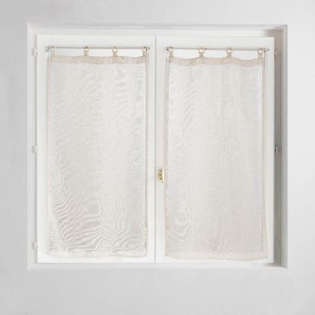 Informations Techniques : Dimensions : L. 60 x H. 120 cm Matière : 100% Polyester Spécificités : Pratique & Utile Paire de voilages tissée Avec œillets en bois Label Oeko-Tex Conseils d'entretien : Lavage à 30° Pas de séchage en machine Pas de repassage Poids : 0,21 kg Couleur : Lin