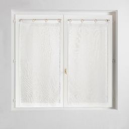 Informations Techniques : Dimensions : L. 60 x H. 160 cm Matière : 100% Polyester Spécificités : Pratique & Utile Paire de voilages tissée Avec œillets en bois Label Oeko-Tex Conseils d'entretien : Lavage à 30° Pas de séchage en machine Pas de repassage Poids : 0,27 kg Couleur : Blanc