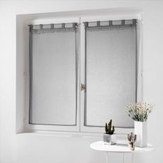 Informations Techniques : Dimensions : L. 60 x H. 160 cm Matière : Polyester Spécificités : Vendu par lot de 2 Type : Brise bise Type de fixation : à passants Poids : 0,224 kg Couleur : Gris