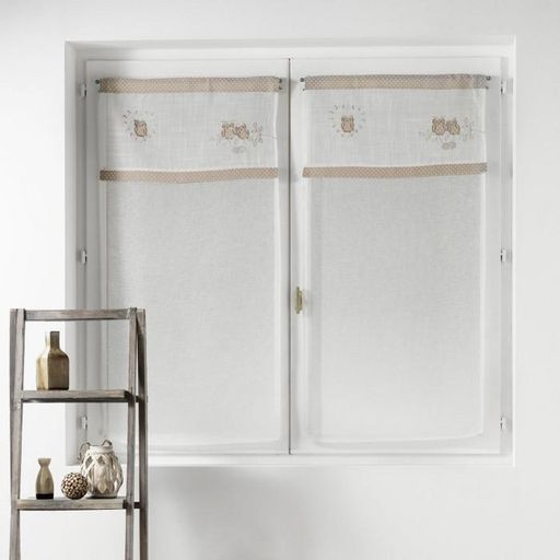 Informations Techniques : Dimensions : L. 60 x H. 90 cm Matière : Polyester Spécificités : Imprimé : Hiboux Vendu par lot de 2 Type : Brise Bise Type de Fixation : à passe tringle Poids : 0,108 kg Couleur : Naturel