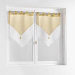 Informations Techniques : Dimensions : L. 160 x l. 60 cm Matière : 100% Polyester Spécificités : Tendance & Utile Paire de voilages Avec passants Bicolore Avec pompons Poids : 0,22 kg Couleur : Miel & Blanc