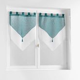 Informations Techniques : Dimensions : L. 160 x l. 60 cm Matière : 100% Polyester Spécificités : Tendance & Utile Paire de voilages Avec passants Bicolore Avec pompons Forme rectangulaire Poids : 0,22 kg Couleur : Pétrole & Blanc