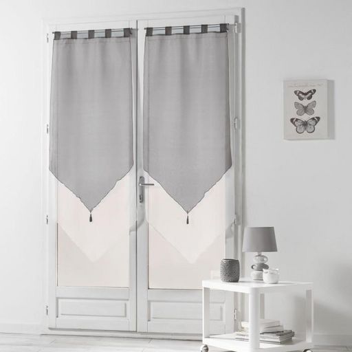 Informations Techniques : Dimensions : L. 60 x H. 160 cm Matière : Polyester Vendu par lot de 2 Type : Brise bise Type de fixation : à passants Poids : 0,181 kg Couleur : Blanc & Gris