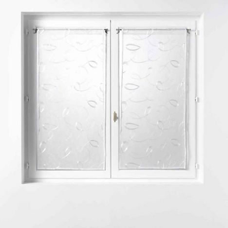 Informations Techniques : Dimensions : L. 60 x H. 90 cm Matières : Tissu Spécificités : Pratique & Utile Paire de Voilages Vendu par Lot de 2 Forme Rectangulaire Fixation Passe Tringle Finition Brodée Poids : 0,12 kg Couleur : Blanc