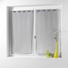Informations Techniques : Dimensions : L. 90 x H. 90 cm Matière : Polyester Spécificités : Doux & Tendance Paire de Voilage déco Type de fixation : à passants Couleur : Gris