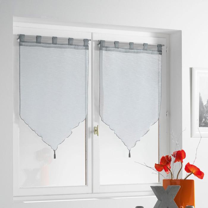 Informations Techniques : Dimensions : L. 90 x H. 90 cm Matière : Polyester Spécificités : Vendu par lot de 2 Type : Brise bise Type de fixation : à passants Poids : 0,139 kg Couleur : Gris