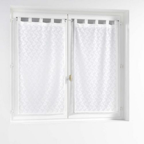 Informations Techniques : Dimensions : L. 60 x H. 90 cm Matière : 100% Polyester Spécificités : Déco & Fantaisie Paire de voilages à passants Motif fleur en maille Entretien : Lavage à 30° Pas de séchage en machine Pas de repassage Poids : 0,13 kg Couleur : Blanc