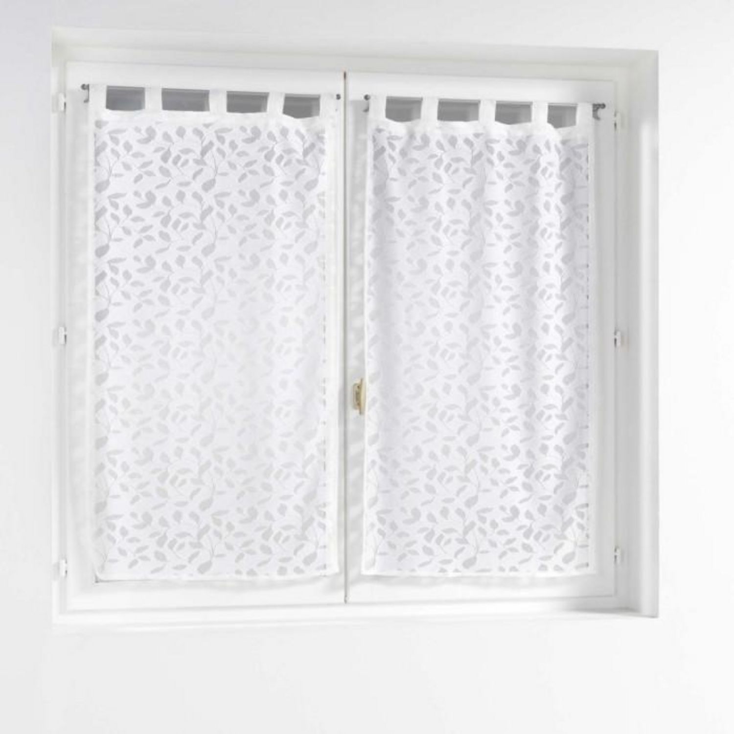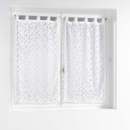 Informations Techniques : Dimensions : L. 60 x H. 160 cm Matière : 100% Polyester Spécificités : Déco & Fantaisie Paire de voilages à passants Motif feuille en maille Poids : 0,24 kg Couleur : Blanc