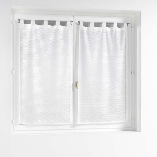 Informations Techniques : Dimensions : L. 60 x H. 120 cm Matière : 100% Polyester Spécificités : Déco & Fantaisie Paire de voilages à passants Motif losange en maille Entretien : Lavage à 30° Pas de séchage en machine Pas de repassage Poids : 0,17 kg Couleur : Blanc