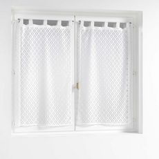 Informations Techniques : Dimensions : L. 60 x H. 120 cm Matière : 100% Polyester Spécificités : Déco & Fantaisie Paire de voilages à passants Motif en maille Entretien : Lavage à 30° Pas de séchage en machine Pas de repassage Poids : 0,16 kg Couleur : Blanc