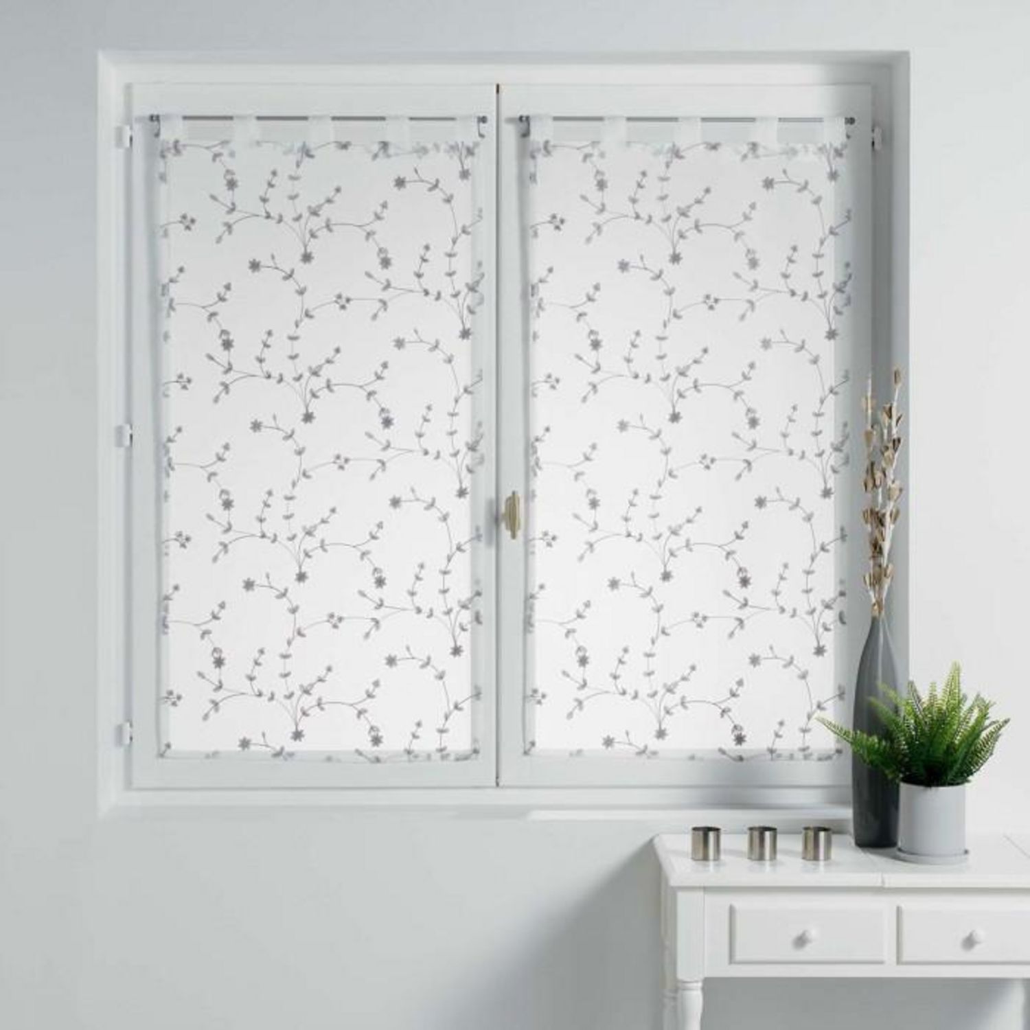 Informations Techniques : Dimensions : L. 60 x H. 120 cm Matière : Polyester Spécificités : Design & Pratique Paire de voilages à passants Voilage double effet sablé Broderie petites fleurs Facile d'entretien & d'utilisation Poids : 0.2 kg Couleur : Blanc & Gris