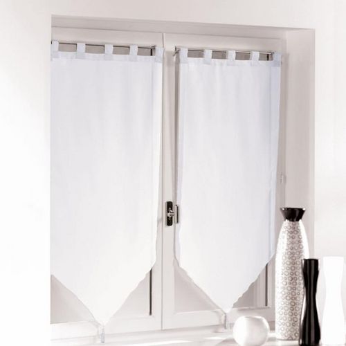 Informations Techniques : Dimensions : L. 60 x H. 120 cm Matière : Polyester Spécificités : Vendu par lot de 2 Type : Brise bise Voilage à passants Extrémité à pompon Poids : 0,116 kg Couleur : Blanc