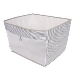 Informations Techniques : Dimensions : L. 40 x l. 33 x H. 28 cm Matière : Polyester Spécificités : Pratique & Utile Panier de Rangement Forme Rectangulaire A Motifs Poids : 0,52 kg Couleur : Gris & Naturel