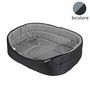 Informations Techniques : Dimensions : L. 75 x l. 58 cm Matière : Textile Spécificités : Pratique & Efficace Panier Design Forme Ovale Bicolore Pour Chiens & Chats Couleur : Noir & Gris