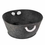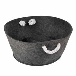 Informations Techniques : Dimensions : L. 40 x l. 30 x H. 18 cm Matière : Feutrine Spécificités : Pratique & Efficace Panier Chat & Chien Avec Anses en Corde Couleur : Anthracite