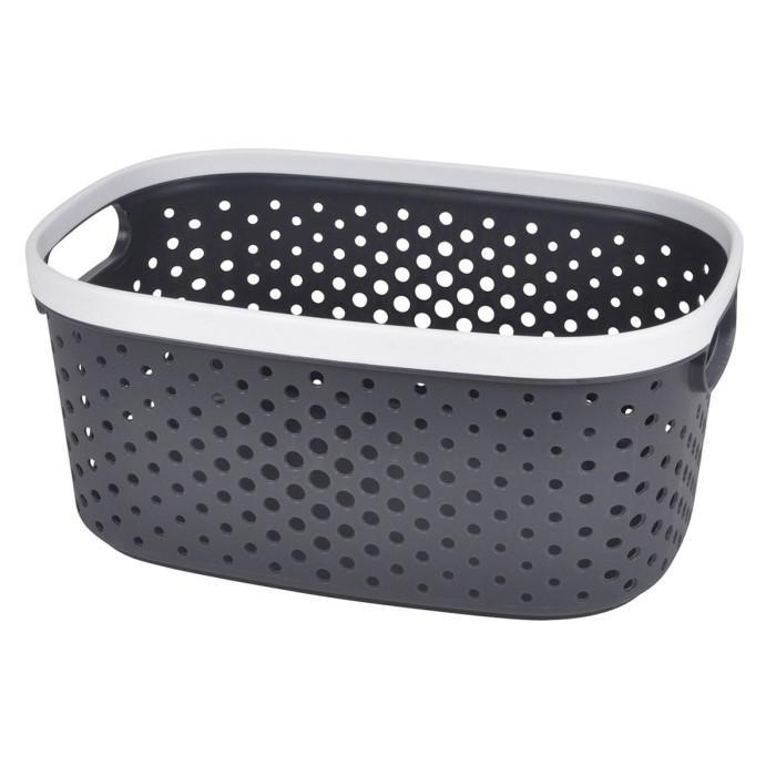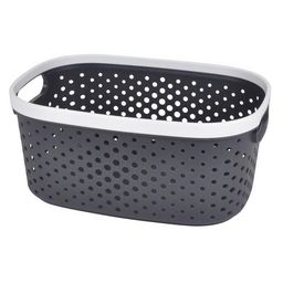 Informations Techniques : Dimensions : L. 24,5 x l. 17,5 x H. 12,5 cm Matière : Plastique Spécificités : Pratique & Utile Panière à Linge Effet Ajouré Bicolore Contenance : 3,5 L Facile d'entretien & d'utilisation Couleur : Anthracite