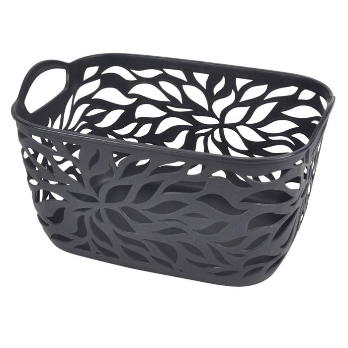 Panière à Linge Motif Végétal 14L Anthracite