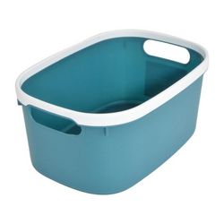 Informations Techniques : Dimensions : L. 30 x l. 20,5 x H. 13,5 cm Matière : Plastique Spécificités : Pratique & Utile Panière de rangement Avec poignées Design bicolore Forme rectangulaire Capacité : 6 L Poids : 0,22 Kg Couleur : Emeraude & Blanc
