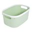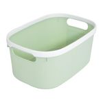 Informations Techniques : Dimensions : L. 30 x l. 20,5 x H. 13,5 cm Matière : Plastique Spécificités : Pratique & Utile Panière de rangement Avec poignées Design bicolore Forme rectangulaire Capacité : 6 L Poids : 0,22 Kg Couleur : Sauge & Blanc