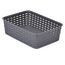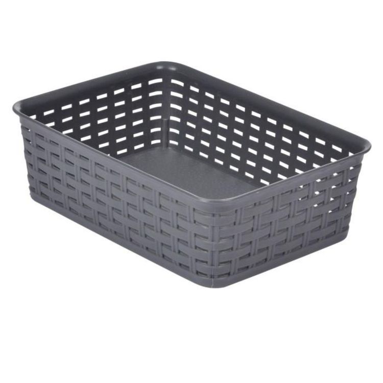 Informations Techniques : Dimensions : L. 19,5 x l. 14 x H. 6 cm Matière : Plastique Spécificités : Pratique & Utile Panière de Rangement Forme Rectangulaire Contenance : 1,6 L Facile d'entretien & d'utilisation Couleur : Gris