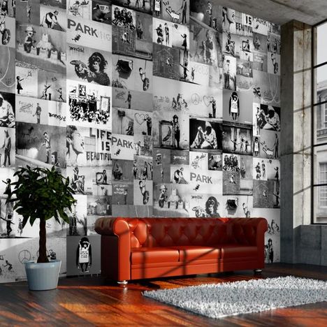 Papier Peint Banksy Grey Collage 50x1000cm
