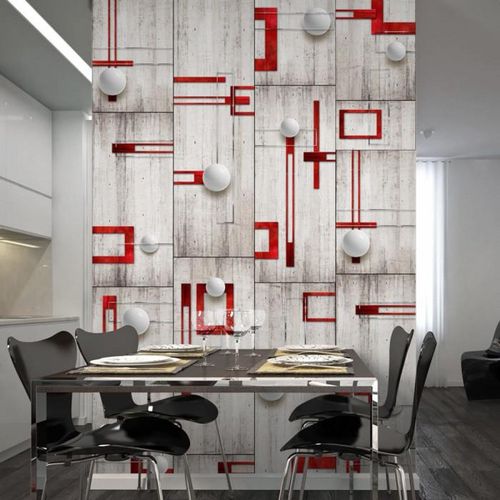 Papier Peint Concrete, Red Frames & White Knobs 50x1000cm
