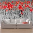 Papier Peint Coquelicots Rouge sur Champ Noir & Blanc 270x450cm