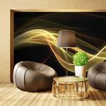 Papier Peint Onde Dynamique Jaune sur Fond Noir 270x450cm