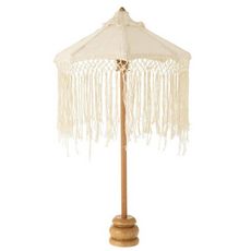 Informations Techniques : Dimensions : L. 50 x l. 50 x H. 84 cm Matière : 45% Bois (Willow), 30% Tissu & 25% Bambou Spécificités : Déco & Utile Parasol sur pied Longues franges Style bohème Usage intérieur Poids : 1 kg Couleur : Crème