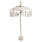 Informations Techniques : Dimensions : D. 50 x H. 90,5 cm Matières : Coton & Bois Spécificités : Tendance & Chic Parasol Déco Pompons Intégrés Pliable Montage sur Pied Usage intérieur Facile d'utilisation & d'entretien Poids : 0,68 kg Couleur : Crème & Argent