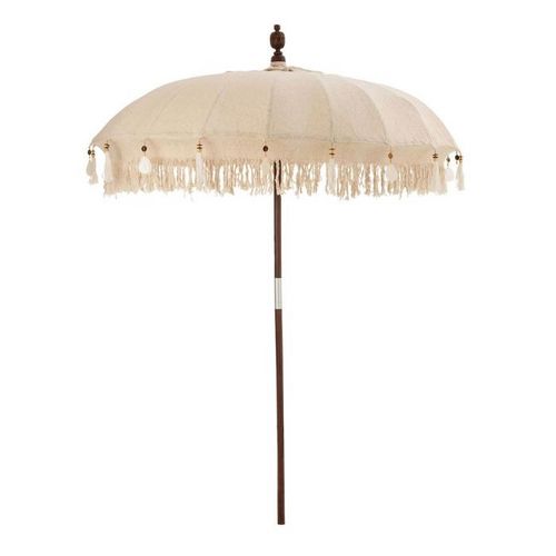 Informations Techniques : Dimensions : D. 188 x H. 250 cm Matière : Bois Spécificités : Pratique & Tendance Parasol Déco Avec Pompons & Coquillages A monter soi-même Poids : 4,78 kg Couleur : Beige