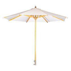 Informations Techniques : Dimensions : D. 300 x H. 270 cm Tige : D. 4,8 cm Barre : H. 258 cm Matières : Bois (Hêtre) & Polyester Spécificités : Pratique & Élégant Ouverture avec poulie Facile d'utilisation Pied de parasol non inclus Poids : 14 kg Couleur : Naturel