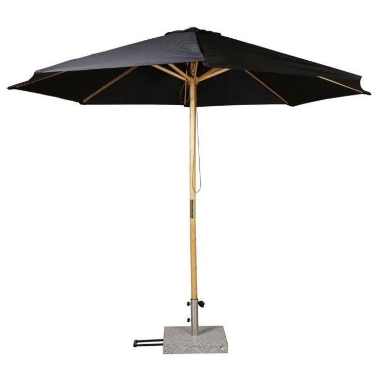 Informations Techniques : Dimensions : D. 300 x H. 244 cm Tige : D. 4,8 cm Barre : H. 242 cm Matières : Bois (Hêtre) & Polyester Spécificités : Pratique & Moderne Ouverture avec poulie Facile d'utilisation Pied de parasol non inclus Poids : 9,5 kg Couleur : Noir