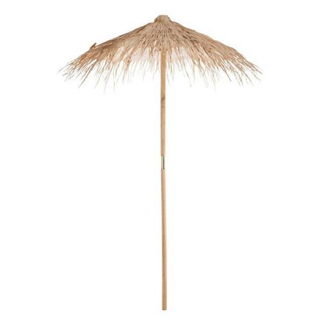 Informations Techniques : Dimensions : D. 150 x H. 270 cm Matières : 90% Paille, 8% Bois & 2% Tissu Spécificités : Tendance & Pratique Parasol design Forme Ronde Pied de Parasol vendu séparément Poids : 4,76 kg Couleur : Naturel