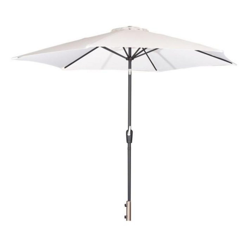 Informations Techniques : Dimensions : D. 300 x H. 250 cm Poteau : D. 3,8 x H. 243 cm Matières : Polyester, Aluminium & Plastique Spécificités : Pratique & Utile Parasol avec manivelle Poids : 6 kg Couleur : Blanc