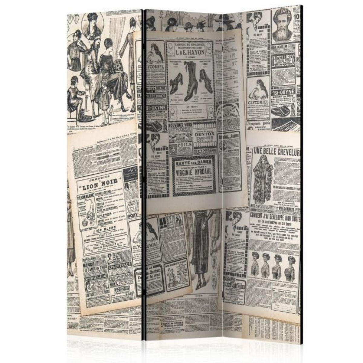 Paravent 3 Volets Vintage Newspapers 135x172cm