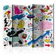 Informations Techniques : Dimensions : L. 225 x l. 172 cm Matière : Structure : Bois Revêtement : Toile intissée Spécificités : Nombre de panneaux : 5 Impression Full HD de haute qualité recto/verso Toile en fiseline : agréable au toucher et sans agrafes visibles Structure solide en bois pour une