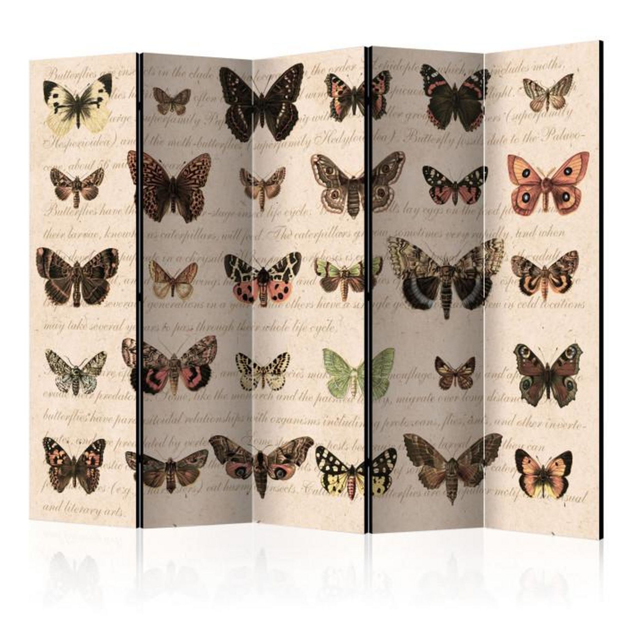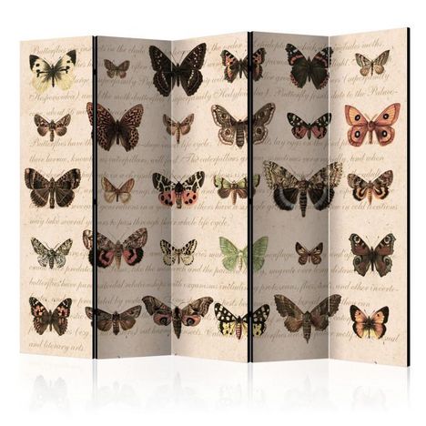 Paravent 5 Volets Retro Style : Butterflies 172x225cm