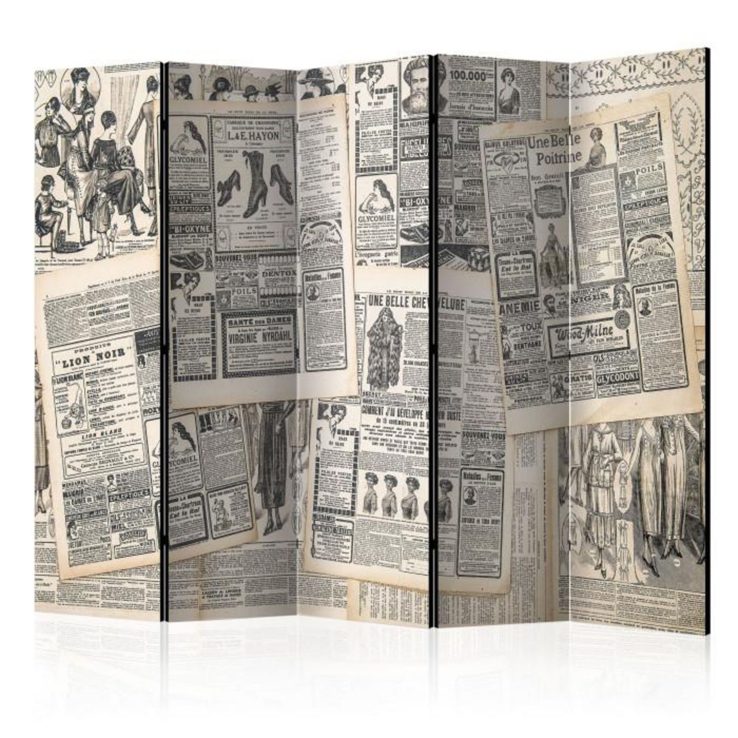Paravent 5 Volets Vintage Newspapers 172x225cm