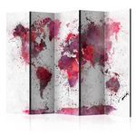 Paravent 5 Volets World Map : Red Watercolors 172x225cm