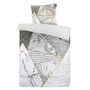 Informations Techniques : Dimensions : L. 140 x l. 200 cm 1 Taie d'oreiller : L. 65 x l. 65 cm Matière : 100% Coton Satiné Spécificités : Design & Tendance Parure de Lit Deco 1 Taie d'Oreiller Surface Douce Convient pour un Lit 1 Personne Avec Fermeture Éclair en Plastique Forme Rectangulaire Oeko