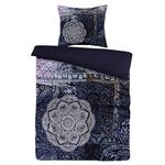 Informations Techniques : Dimensions : L. 140 x l. 200 cm 1 Taie d'oreiller : L. 65 x l. 65 cm Matière : 100% Coton Satiné Spécificités : Coloré & Oriental Parure de Lit Deco 1 Taie d'Oreiller Surface Douce Convient pour un Lit 1 Personne Avec Fermeture Éclair en Plastique Forme Rectangulaire Oeko