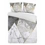 Informations Techniques : Dimensions : L. 240 x l. 220 cm 2 Taies d'oreiller : L. 65 x l. 65 cm Matière : 100% Coton Satiné Spécificités : Design & Tendance Parure de Lit Deco 2 Taies d'Oreiller Surface Douce Convient pour un Lit 2 Personnes Avec Fermeture Éclair en Plastique Forme Rectangulaire O