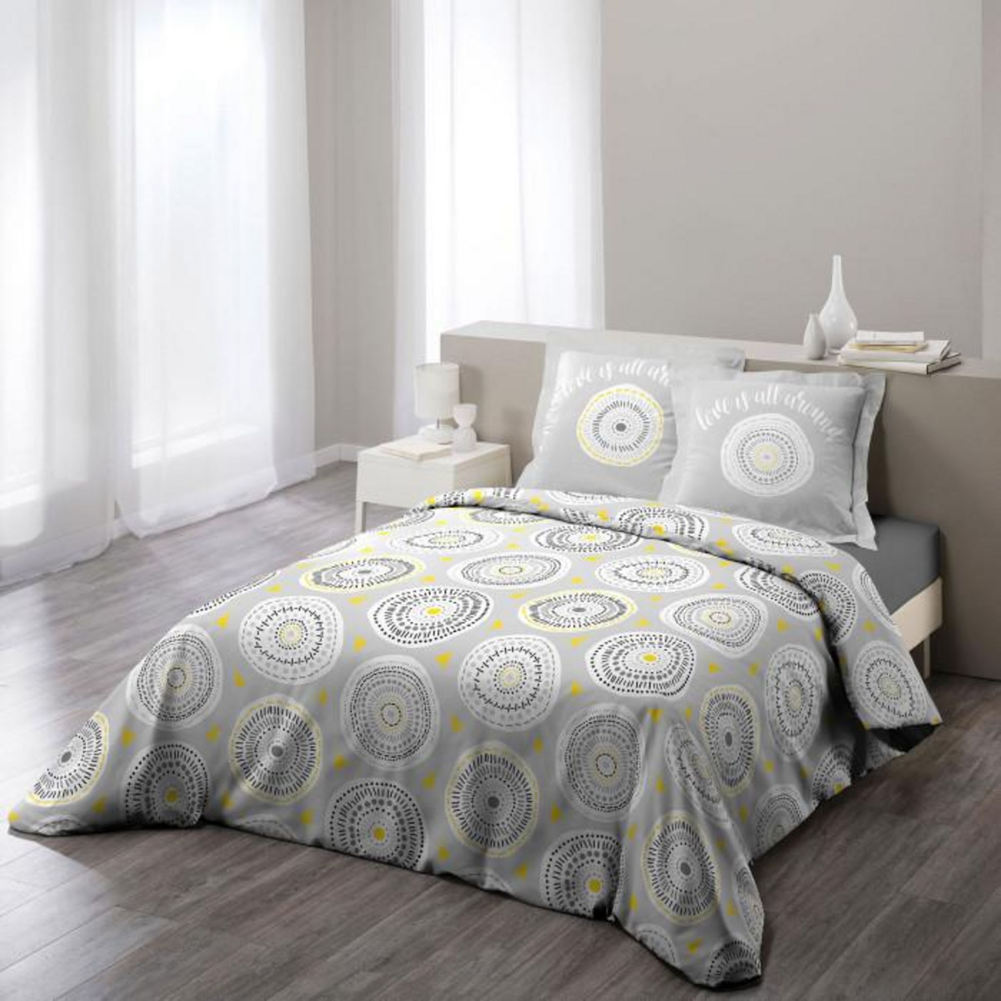 Parure de Lit 3 Pièces Disco 240x220cm Jaune & Gris