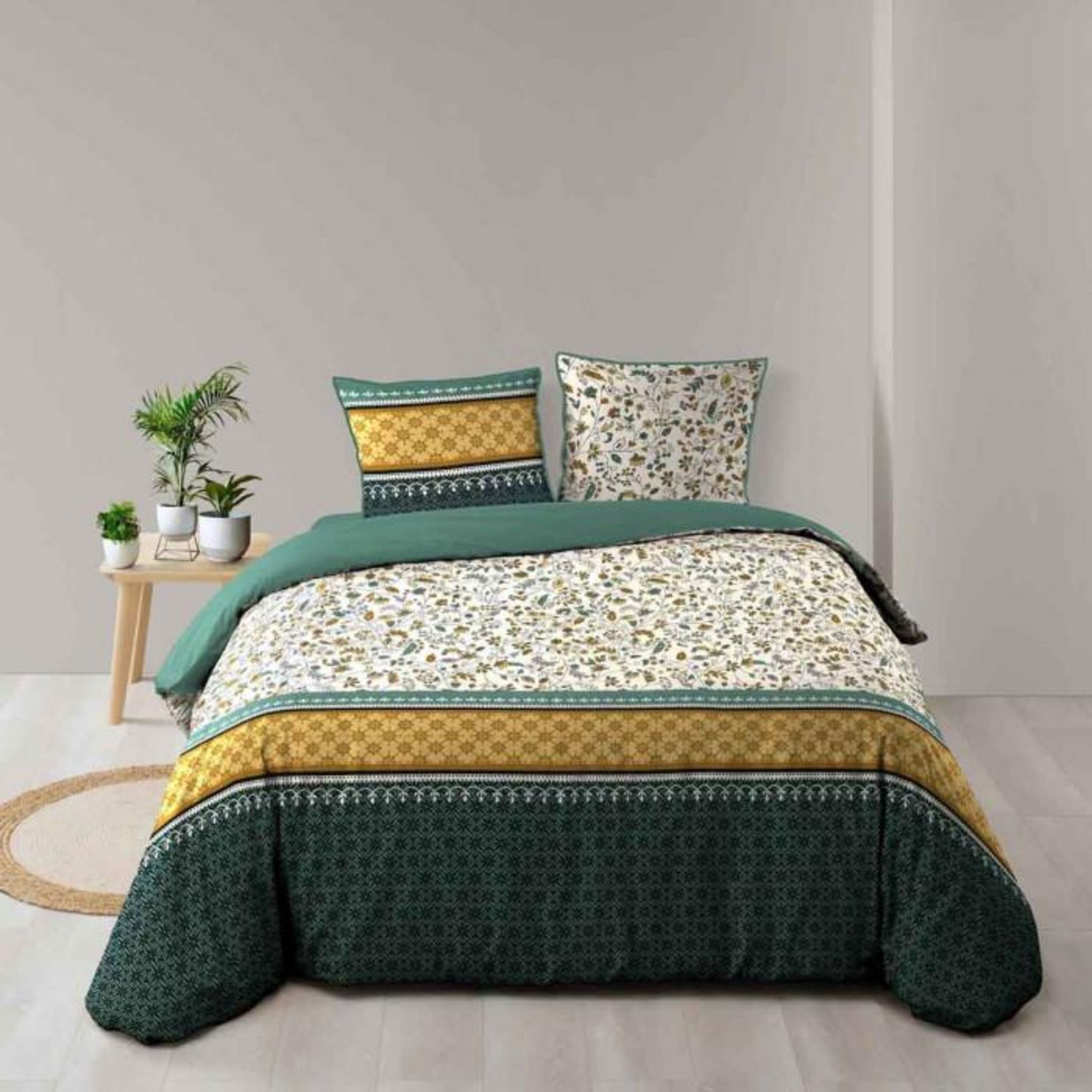 Parure de Lit 3 Pièces Fleurine 260x240cm Vert