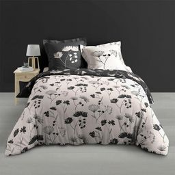 Informations Techniques : Dimensions : Housse de couette : L. 260 x l. 240 cm Taie d'oreiller : L. 63 x l. 63 cm Matière : 100% Percale de Coton (78 fils) Spécificités : Douce & Élégante Parure de lit 3 pièces Pour 2 personnes Imprimé iris Fermeture avec pressions Certification Oeko-Tex Contient : 1