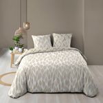 Informations Techniques : Dimensions : Housse de couette : L. 240 x l. 260 cm Taies d'oreiller : L. 63 x l. 63 cm Matière : 100% Coton (57 fils/cm²) Spécificités : Confortable & Réversible Parure de lit 3 pièces Pour 2 personnes Imprimé feuille Fermeture à pression Label Oeko-Tex Contient : 1 housse