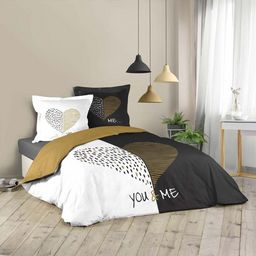 Informations Techniques : Dimensions : L. 220 x l. 240 cm Matière : Coton (42 fils/cm2) Spécificités : Design & Pratique Contient 2 taies d'oreiller & 1 housse de couette Motif coeur Poids : 1.6 kg Couleur : Blanc & Noir